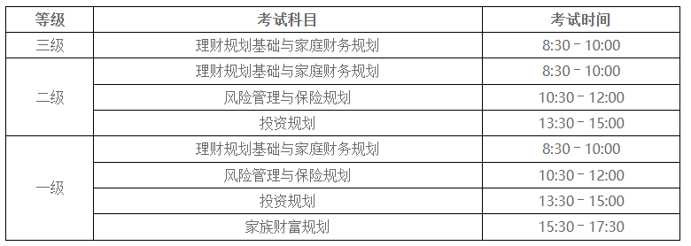 发表时间:2024-12-25 09:00网址:http://www.chfp.org (一)认证等级和考试科目 1、共设三个等级: 初级理财规划师(CHFP)三级 中级理财规划师(CHFP)二级 高级理财规划师(CHFP)一级 注:理财规划师(CHFP)一级是最高级,三个等级的认证能力要求不同,请参考理财规划师(CHFP)专业委员会官网认证标准。 2、考试科目: 三级一科: 《理财规划基础与家庭财务规划》 二级三科: 《理财规划基础与家庭财务规划》 《风险管理与保险规划》 《投资规划》 一级四科: 《理财规划基础与家庭财务规划》 《风险管理与保险规划》 《投资规划》 《家族财富规划》 (二)2025年考试时间和报考时间 1、考试、报考、成绩查询、证书发放日期: 2、考试时间安排: 注:具体考试方式注意官网通知 (三)报考条件 同时符合下列相应条件的,可报考理财规划师(CHFP)三级认证考试。 1、具有完全民事行为能力 2、具有高中或国家承认相当于高中以上文化程度; 3、获得理财规划师(CHFP)专业委员会授权培训机构颁发的有效《理财规划师(CHFP)培训合格证书》(拥有经济学、管理学、法学博士学位的,可免此项) 同时符合下列相应条件的,可报考中级理财规划师(CHFP)二级认证考试。 1、具有完全民事行为能力; 2、具有专科或国家承认相当于专科以上文化程度; 3、获得理财规划师(CHFP)专业委员会授权培训机构颁发的有效《理财规划师(CHFP)培训合格证书》(拥有经济学、管理学、法学博士学位的,可免此项)。 同时符合下列相应条件的,可报考高级理财规划师(CHFP)一级认证考试。 1、具有完全民事行为能力; 2、具有本科或国家承认相当于本科以上文化程度; 3、获得理财规划师(CHFP)专业委员会授权培训机构颁发的有效《理财规划师(CHFP)培训合格证书》 (拥有经济学、管理学、法学博士学位的,可免此项)。 注:授权培训机构目录见CHFP理财规划师专业委员会官网,如有变动,以官网公告为准。 (四)考试题型 三级一科: 《理财规划基础与家庭财务规划》60道单选题+40道多选题,每题1分,共100分。 二级三科: 科目一:《理财规划基础与家庭财务规划》60道单选题+40道多选题,每题1分,共100分。 科目二:《风险管理与保险规划》60道单选题+40道多选题,每题1分,共100分。 科目三:《投资规划》50道不定项选择题(三个案例题,前两个案例每题10个不定项选择题,最后一个案例题,30个不定项选择题),每题2分,共100分。 一级四科: 科目一:《理财规划基础与家庭财务规划》60道单选题+40道多选题,每题1分,共100分。 科目二:《风险管理与保险规划》60道单选题+40道多选题,每题1分,共100分。 科目三:《投资规划》50道不定项选择题(三个案例题,前两个案例每题10个不定项选择题,最后一个案例题,30个不定项选择题),每题2分,共100分。 第四科:《家族财富规划》家族综合财富规划案例分析题2个,每题30分,1个专项论文(3个题目选1个作答即可),40分,共100分。 (五)考试大纲 中国金融出版社理财规划师(CHFP)执业能力等级认证培训教材(第六版)教材考试大纲。 (六)考试用书 中国金融出版社理财规划师(CHFP)执业能力等级认证培训教材(第六版)。 (七)考试形式 各认证级别设立标准题库,考试试题由标准题库抽题组卷和行业新规构成。 三个等级的考试都采取闭卷机考形式,各科满分均为100分,成绩在60分以下视为不合格,不能通过本科次考试。 成绩达到60分-75分视为成绩合格; 成绩达到76分-90分视为成绩良好; 成绩达到90分以上视为优秀。 考试不合格的,保留达到60分及以上的科目成绩一年,在此期间可参加补考。 一年内仅有且可补考一次(考试至少通过一科为补考,缺考或者全科都没通过视为重新报考)。 (八)考试费用 理财规划师(三级)认证考试费为100元。 中级理财规划师(二级)认证考试费为400元。 高级理财规划师(一级)认证考试费为600元。 补考考试费如下: 《理财规划基础与家庭财务规划》 100元 《风险管理与保险规划》150元 《投资规划》150元 《家族财富规划》200元 (九)报考流程 1、报名学习:考生学习培训可以参加面授班型或线上远程课程,不同地区的面授培训可咨询当地的授权机构,各地区授权机构可在官网授权单位中查看,您也可以通过理财规划师(CHFP)专业委员会官网的公众号、CHFP官方学习平台报名参加学习。 2、获取培训合格证:学习结束后,达到专委会要求的学习时长,在报考平台提交个人资料时,自动获得培训合格证书。 3、准考证查询下载:考试前一周,所有学员均可通过官网,查询并下载打印准考证,届时请留意官网通知。 4、成绩查阅:考试后30个工作日内,考生可登录官网查询成绩。 5、证书邮寄:考试后60个工作日内,由专委会统一邮寄纸质证书。 (十)投诉建议 为了确保学习质量和培训效果,要求所有在各授权培训机构处报名参加培训的学员,必须统一参加《CHFP理财规划师执业能力标准线上课程》的学习, 对授权机构未开通账号、服务、教学内容可向专委会投诉,投诉邮箱为:kaoban@chfp.org。